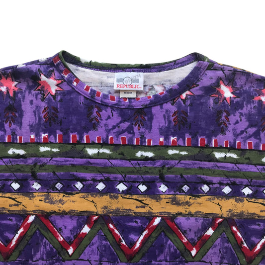 Denim Republic - Purple Color Pattern Vintage 90s T-Shirt